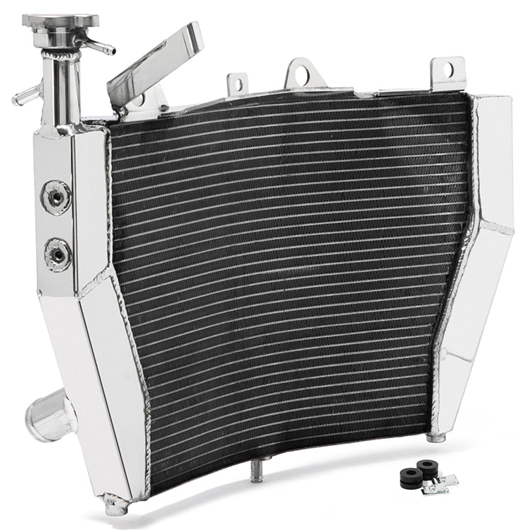 - Enhanced Durability for Aggressive Riding: Constructed from premium 6061-T6 aluminum, this radiator delivers superior structural strength and vibration resistance compared to standard OEM units, built to withstand the demands of high-speed track riding, aggressive cornering, and daily street use.